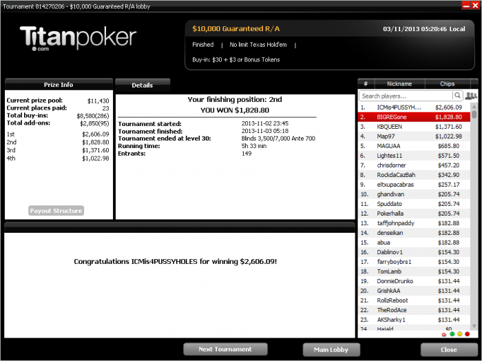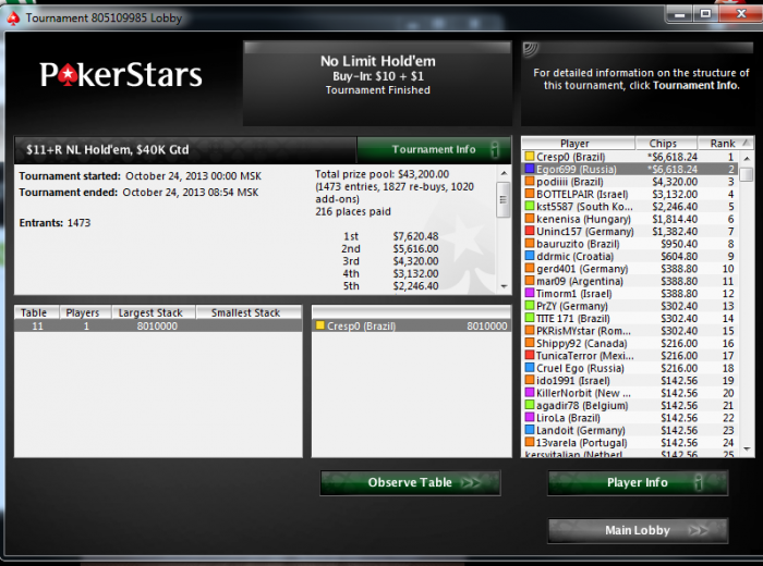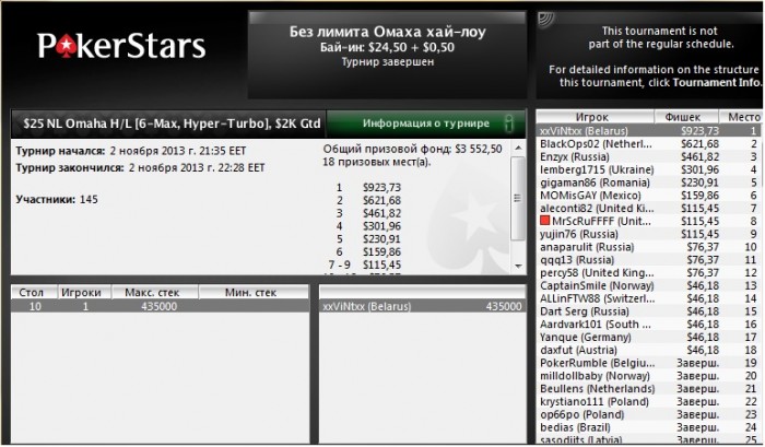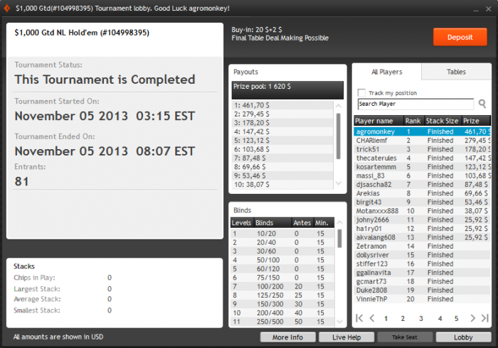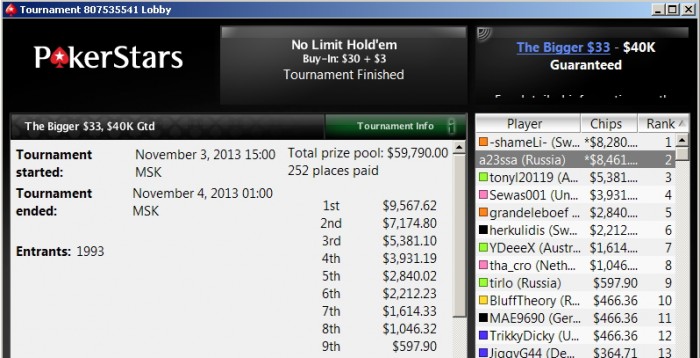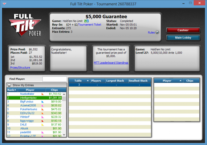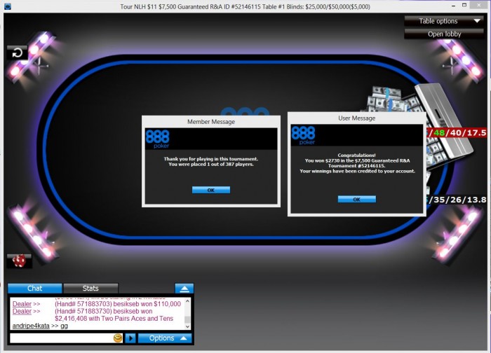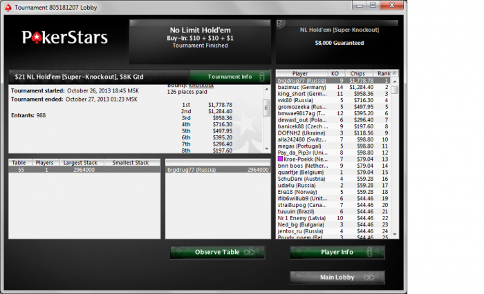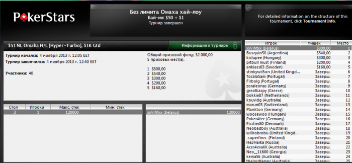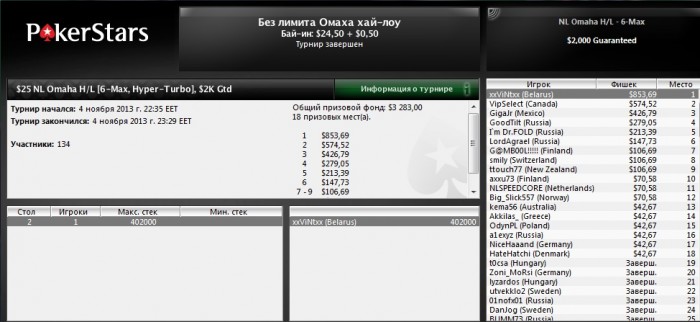 Вышел на финалку 9-м,меньше чем с 10бб,там чисто на скиле втащил)коины потащил да и в 3 макс 40 на 60 выиграл,устал поэтому ХА не стал играть хотя оп был слаб.Ещё в 2.20 ребе вылетел 8-м
