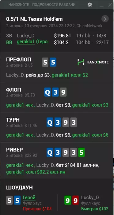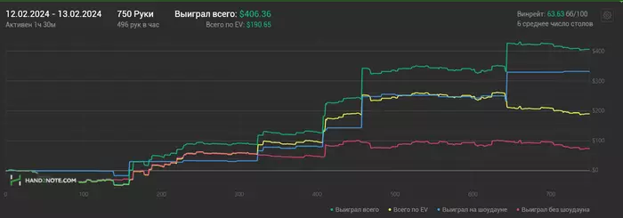 13/02/2024: 1.30ч, 750 рук nl100 +$404.
