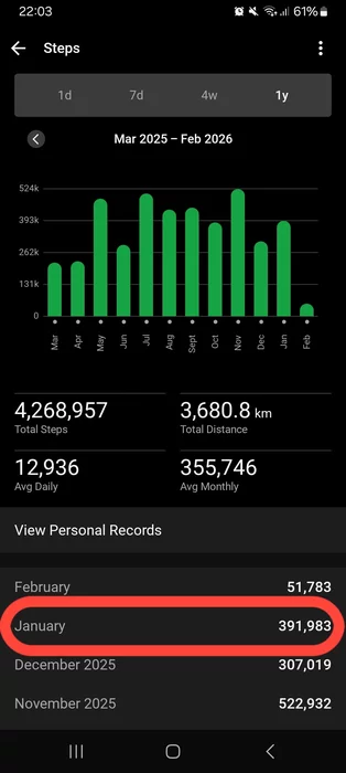 Участникам нужно отшагать 250,000 шагов за месяц и до 5 марта выложить в этот блог скрин из трекера с подтверждением. Добавляйте хэштег #ШагиФевраль2026 — так будет удобнее подводить итоги.