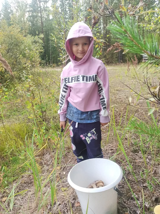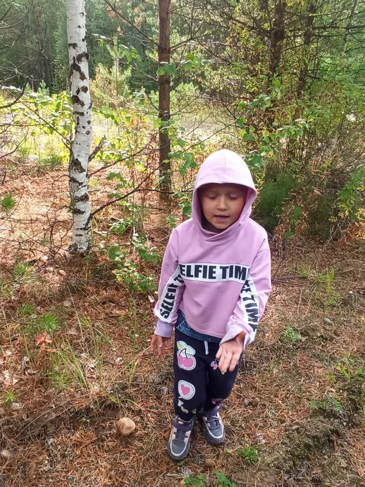 Тут долго спорил с малой, есть ли нет тут грибы. Развернулась и пошла собирать