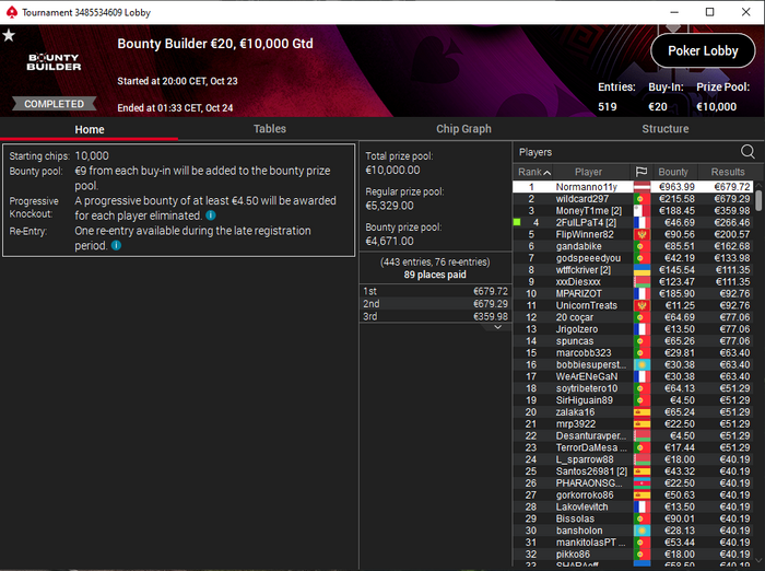 +2.9К) Финалка тильт ебучий. Не потащили в ТОП6 ВВ в Д9с против самого слабого за 330 баксов, пейджамп и большой второй стек и через раздачу намотался с ВВ, по факту отьебланился, но даже если бы нашел пас, то оставил бы себе 6 бб и был бы главным фаворитом на вылет на том же месте. Надо было тащить сверху. Но в целом игрой доволен, тонус есть, винрейты есть, деньги есть. Катаем дальше!