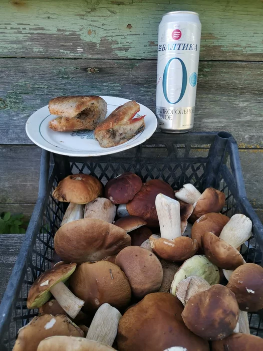 Все грибы пошли в фонд гостей)) позавтракал рыбой и нулевкой!