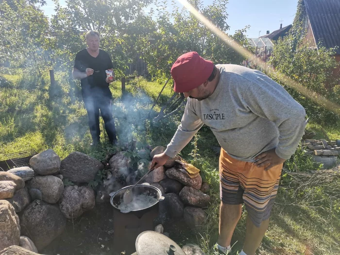 Ребята сразу начали отмечать разными горячительными напитками! Сначало в огороде, потом на озере, потом опять в огороде! Потеряли телефон, ключи от машины-долго искали-не нашли! (утром я все нашёл)