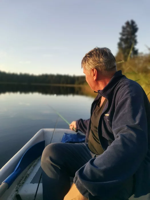 Пошли на ближнее озеро, где клев очень - не очень! Почему? У Виктор Палыча проблемы с суставами-тяжело ходить! И очень устал на гриба-по этому на ближнее! Покидали спиннинги(ноль)