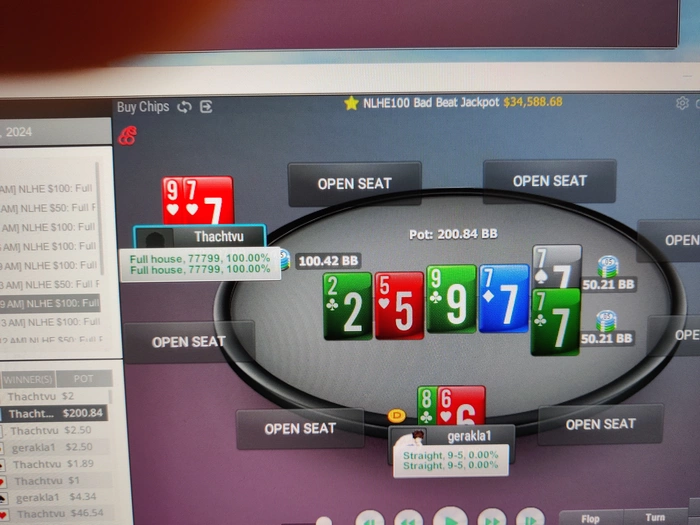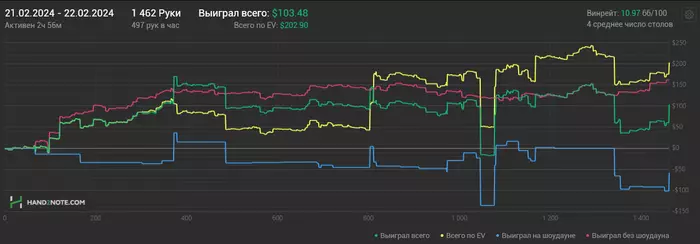 22/02/2024: 2.56ч, 1462 рук nl100 -$141.