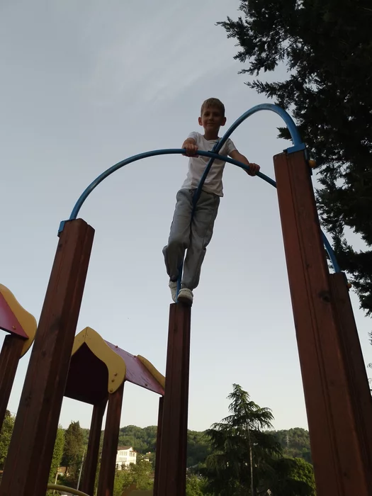 А это вчера. На площадку детскую попал. Саня все показал, куда может залезть😁