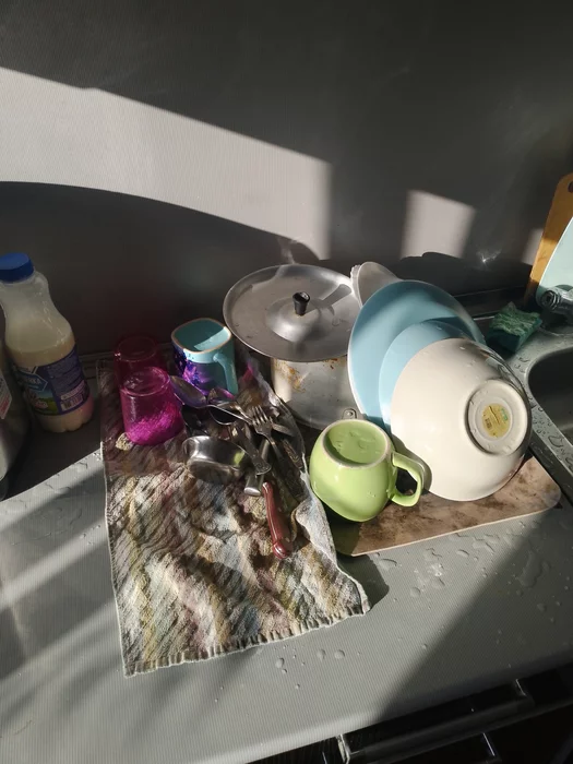 Проснулся сегодня. Понял, что пора дома убрать. Не заметил как время пролетело. Потом перешёл всю посуду. Все миски котов. Потом постирал вещи, загрузил две машинки, вывесил. Потом с Саней пошел в магазин, чтобы купить продукты для готовки. Приготовил и уже вечер. Как они это делают каждый день?))) сварил Сури подливкой к макаронам, сам не люблю магазинную курицу, но дети привыкли есть все на её основе, к сожалению, но будем переучивать.
