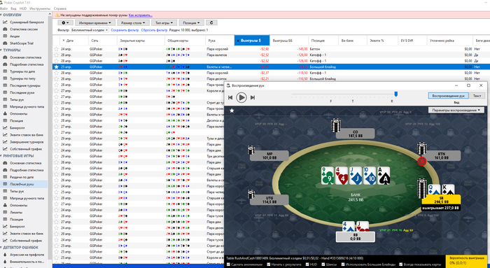5) На некоторых столах айпокера вообще не хочет выводится худ, хотя руки при этом трекаются в базу.