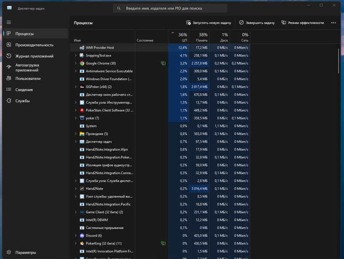 скрины есть только такие, конкретно один процесс очень тормозит все, относится он к h2n конкретно в сети wpn, но с этим ничего не сделать.