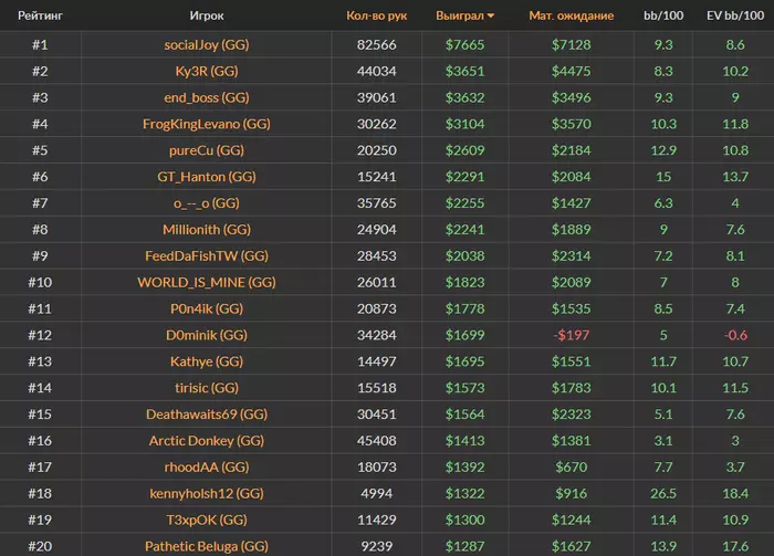 Angler-Fish, если про таблицу выше, то в группе Джипси Тим выложил #ТопТопыч от GT+ (12-я страница) | Форум о покере (gipsyteam.ru)