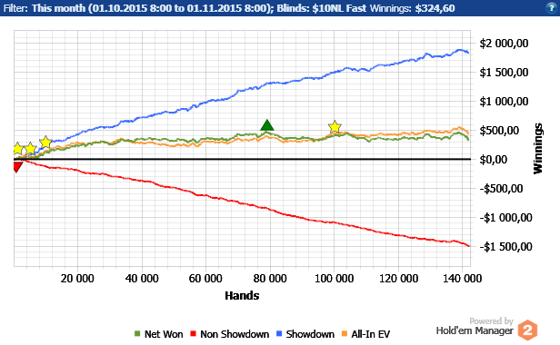Доволен ли я результатом? Нет. Вместо хорошего регуляра, который уверенно бьёт лимит хотя бы в 6-8бб/100 (я более чем уверен, что мне это по силам, т.к. у меня абсолютно всё для этого есть), в конечном итоге я оказался не более, чем рейкодрочером. Да, наверно местами стриковало, но это случается у всех, а не только у меня, потому хули жаловаться. Большая проблема с психологией. Вчера cобиралcя лечь пораньше, открыл блог Иcполнителя и проcидел неcколько чаcов. В общем вывел для cебя неcколько моментов, которые помогут проблему уcтранить: