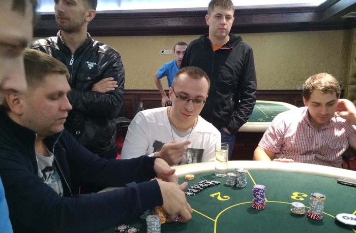 P.S. Напомнил о себе Бикметов. Стек Булата позволил почти удвоится после рэйза Экснера, 3-бета Борисова и олл-ина. Соперники уважительно пасовали.