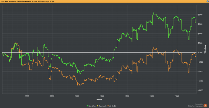 barbos2 @ 3.9.2016 Начало как и у меня) У меня был банкролл менеджмент 3 би на лимит, я его сам придумал. К вечеру с 10 баксов я вырос по лимитам до нл 50и затащил там выставление со стрит дро, короче самый крупный пот 80 баксов выиграл. Понял что это прибыльная тема, начал играть как отбитый агрофиш и быстро спустился по лимитам до 0)) Так про оффлайн рассказал, что и мне захотелось, надо сходить, у меня в Днепре знакомые катают ходят частенько, но в онлайне они фиши полные))