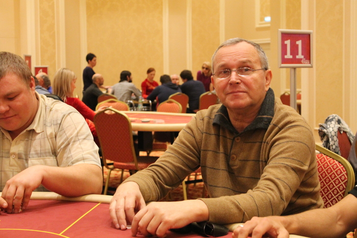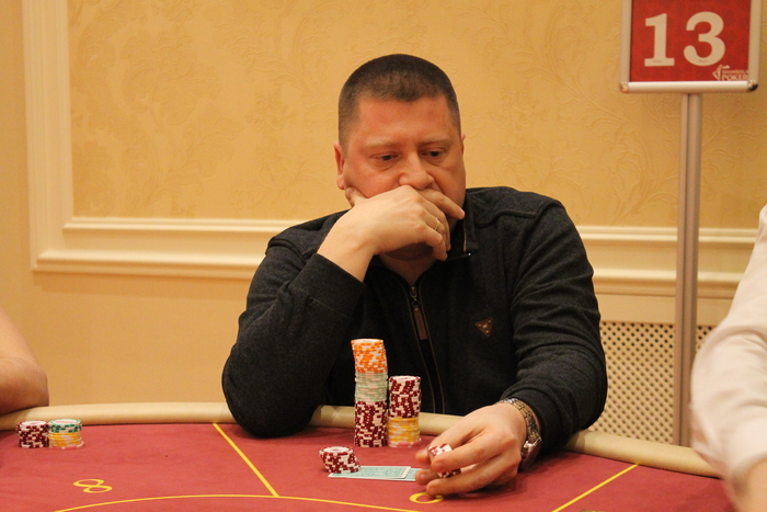 Анатолий Короченский, после серии удачных раздач, вырвался в промежуточного чиплидера, его стек 4,4М