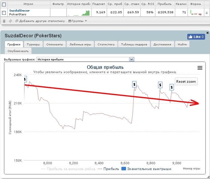 Чек префлоп, бет флоп, увидел там +220 бб/100..... Выборка не большая, около 30 рук, но всё равно, можно было в 2/3 из них заработать шашек.