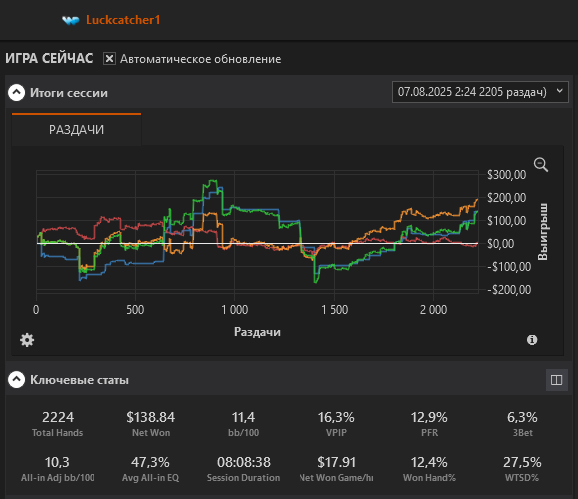 Если кратко - тест нововведений прошёл успешно. Но в конце июля я был на дне. Я был максимально близок к потере банкролла. Уже мелькали мысли то ли крипту расчехлять, то ли на работу устроиться. И дойдя до какой-то критической точки в своей голове я в режиме no sleep начал перебирать и пересматривать основные вещи в игре. Попутно выяснив, что я и позабыл (из-за стресса и депресса) работающие страты против фишей - даже до такого деградировал. Так что где-то пришлось заново вспоминать и пересматривать таблички, конспекты против фишей, где-то внедрять что-то новое.
