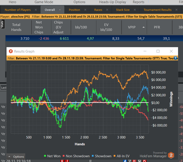 Привет) блин, извиняюсь, перестал заходить в блог, не видел даже, что кто то написал) катаю потихоньку на винамаксе 10 лимит, резалты норм, чип ев даже не знаю, вообще не смотрю график, только в кассу...с 6 мая ушел из пула, захотелось максимальной независимости) сделал график, что бы откатывать по 5к спинов в месяц, набил 20% рейкбек, вот на него и живу) плюс гонки.. флеши на 5 лимите 400 туриков катнул, лудильня еще та, деградация полная, если только их и катать, там мозг включается в 3% случаев, остальное просто по памяти..поэтому и не хочу регулярно на них зависать, ну раз в недельку как выходной день можно по 500 туриков откатывать) катаю вообще в 6 столов стопкой с глючным то ли хадом, то ли х2н, постоянно пропадает) до недавнего времени вообще под сериалы катал, накачаю серий и с одной стороны моника столы, а с другой сериал))) за пару месяцев успел пересмотреть дневники вампира все сезоны, ключи локков, мир дикого запада все сезоны и еще кучу сериалов начинал, но не зашли под катку ах ха)) короче, стал примером того как нельзя делать)) ну мне все равно, самые худшие резы были когда летом осенью катал в 3 стола с полной концентрацией, сейчас значительно лучше все..думаю, даже логически можно обьяснить это...во первых, тильта 0, не вижу не выставлений ни доездов оппов...(пишу наверное с кучей ненужных запятых, сори). Во вторых, первоочередную роль играют все знания, набытые кучей часов тренировок, тоесть какое-то подобие гто низкого уровня ну и плюс общий эксплойт поля..при этом я себя не левелю, пытаясь подстроиться под оппа, на которого нотс, что где то переколил например...мне кажется, что бы эксплойт был реально плюсовей гто, нужно понимать ренжи как Найстумит, в остальных случаях я сам себя просто переигрывал) вот так и живу..