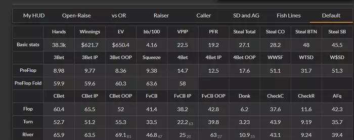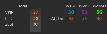 Та же картина была вчера вечером. Примечательно, что у них низкий трибет относительно поля. Это происходит из-за того, что обычно у всех значение сильно завышено, из-за использования функции "фастфолда". У этих ребят значение реальное (как и остальные), они, играя 4 стола, не используют фастфолд. Нигде. Ниразу. Даже если это ранние позы, они фолдят через несколько секунд раздумий. Даже если это СБ и они не планируют опенить руку против ББ, они все равно ждут, пока все сфолдят и очередь дойдет до них, и через несколько секунд фолдят. Я не представляю, как играя 4 стола, можно просто напрочь отказаться от фастфолда хотя бы в самых очевидных ситуациях.