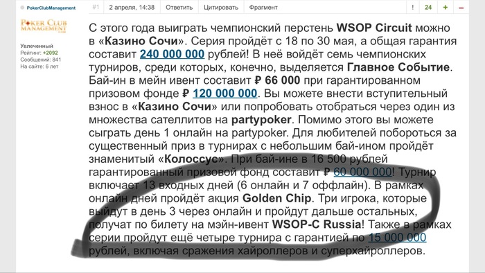 1) Эта акция только для игроков WSOP-C Russia, которые прошли в третий день турнира Колоссус через онлайн дни 1 и 2.