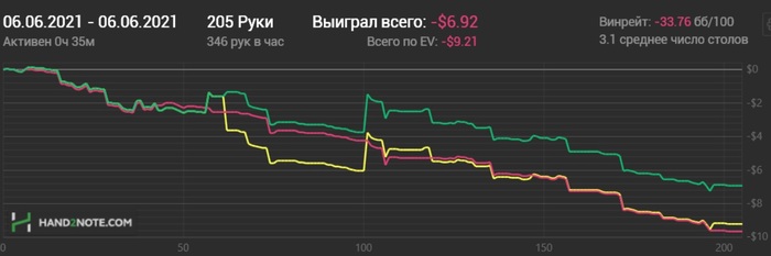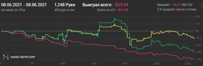 Разминка не удалась от слова совсем. Фолдил нон стоп. Постоянные 3/4 беты и просто ужасные флопы. Психанул, выключил.