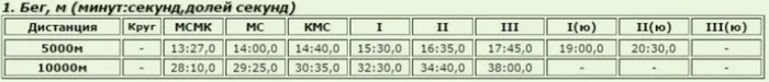 помню, пробежал десятку за 43 мин, на дорожке правда. Иду домой гордый, думаю "это я на 1й взрослый пробежал или на кмс?", открываю таблицу :