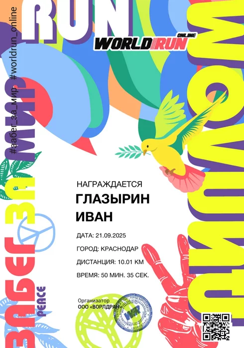 Второй — “Магнит 232” ко Дню города Краснодара, время 52:30, и это, пожалуй, был самый тёплый забег — пробегал по территории родного института, где учился.
