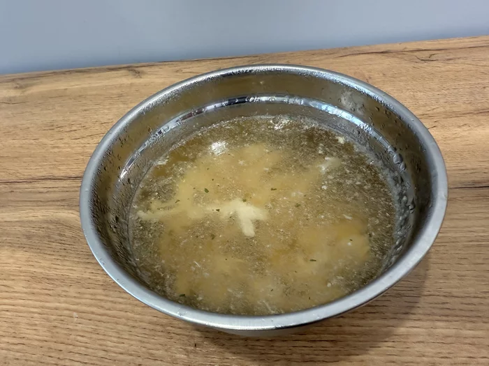 Смешиваем получившийся бульон и желатин. Распределяем по формочкам и даем остыть
