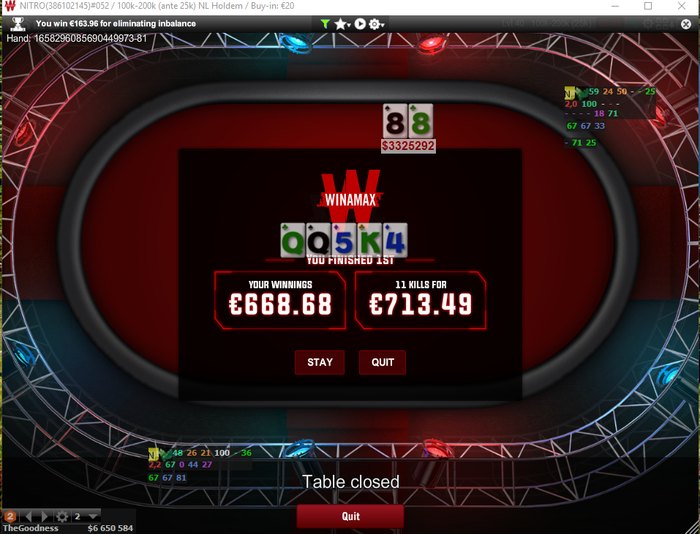Winamax, $4.50 Buy-in (3,000/6,000 blinds, 700 ante) No Limit Hold'em Tournament, 6 Players Poker Tools Powered By Holdem Manager - The Ultimate Poker Software Suite.