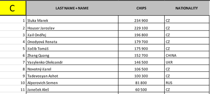 Завершилась поздняя регистрация в суперсателлите. Было сделано 140 входов, борьбу продолжает 56 спортсменов. Почти половина из них - 25 человек - получат билеты в Prague Championship