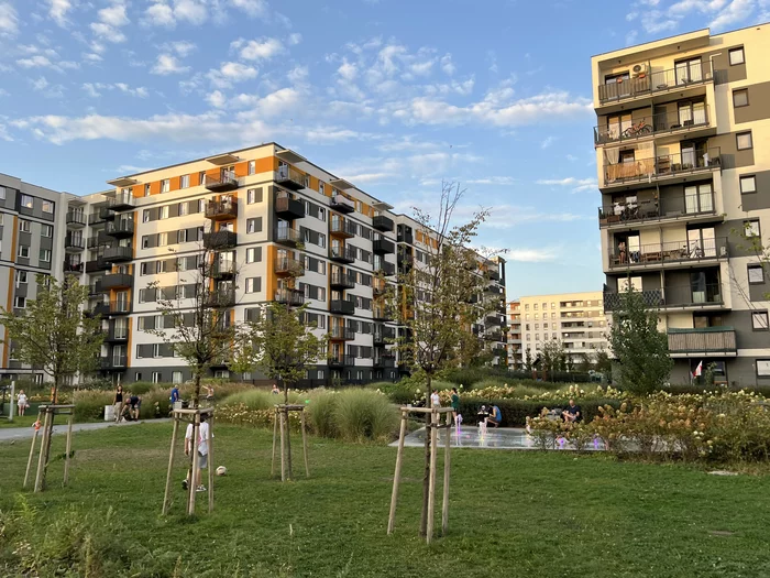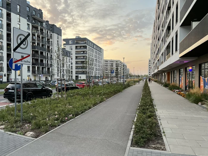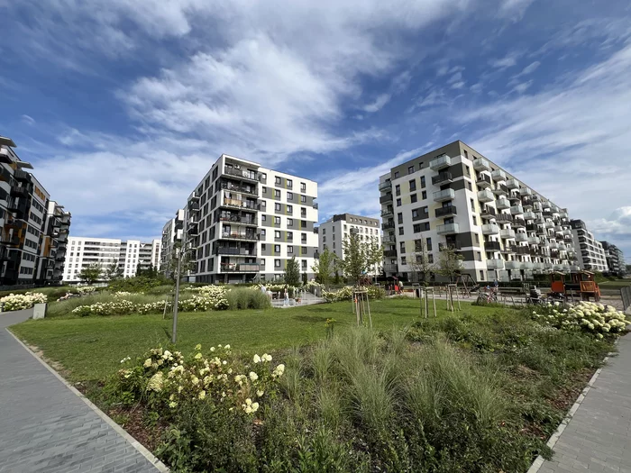 Район хоть и новый но не сильно навороченный, в основном 8-этажные дома, приятное но простое благоустройство, всякие прогулочные зоны между кварталами, отдельные велодорожки. Из минусов - во многих дворах есть парковки для машин, но места почти все приватные, и никто абы как не паркуется на газонах и т.д. Ну и этажность хотелось бы 6-7 максимум, на районе есть несколько таких кварталов и там поуютней.