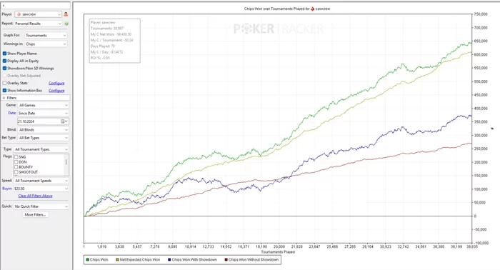 Жалко, что стрикануло по здоровью и за это время 2 раза успел поболеть, обидно прерываться когда только набрал хороший покерный темп. Но ничего, не смотря на это пока иду согласно расписанию с хорошими винрейтами, за 4 месяца марафона сыграно ~51,3к турниров, профит ~36к или 120$/час.