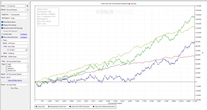 С учетом надоедливых ошибок клиента на старом ноуте и рефундов вышло около 15,1 фишки, винрейт чуть больше 100$/час. Как я уже где-то рассказывал — думаю, что на лимите потолок должен быть фишек 17-18, точно есть куда расти. Пока отдыхаю от игры подробно закопался в ресёрчи, многие нововведения в стратегиях выглядят очень перспективными, не говоря о собственных косяках — много где чувствую, что можно сыграть интереснее, по ходу игры много чего не успевал разобрать полезного. Так что отдыхаю последние дни и, с новым ноутом и новыми стратами, буду стремиться к потолку)