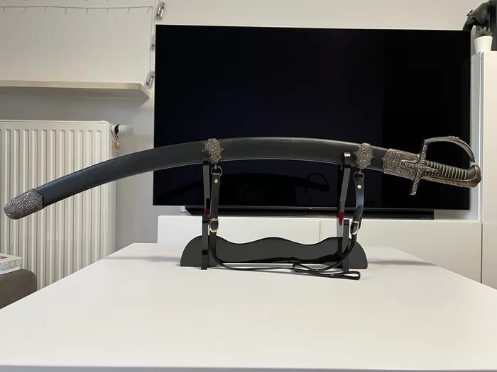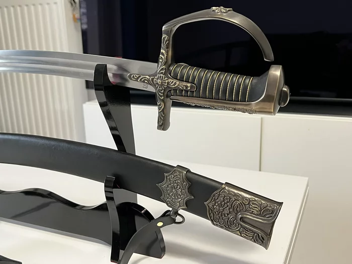 Еще давным давно, когда играл на древнем компе во 2 или 3 корсаров, рубился с пиратами и всякими испанцами и мечтал, чтобы у меня тоже была сабля . Тогда у нас, помню, продавались только всякие сувенирные, но даже такую хотелось. А сейчас решил себе взять уже настоящую, острую и закаленную, хорошо, что в Польше можно владеть холодным оружием (если оно является копией исторических экземпляров, это копия гусарской сабли Речи Посполитой 17 века).