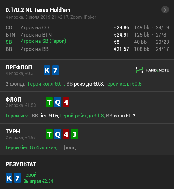 iPoker - €0.20 NL FAST За сессию было пару грубых ошибок на стэк (телефонизм на терне), постараюсь уделить этому лику особое внимание в следующих сессиях.