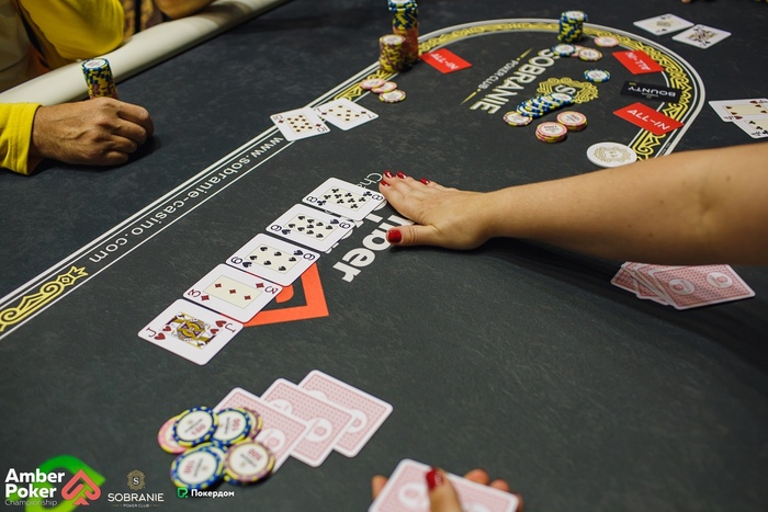 Муталапов открыл из середины, Пантюхин (СО) заколлировал, а Данила Атакшеев с баттона запушил 7,000. Муталапов поставил свой олл-ин на , и Пантюхин закрыл его с .