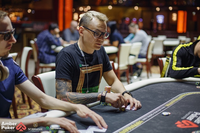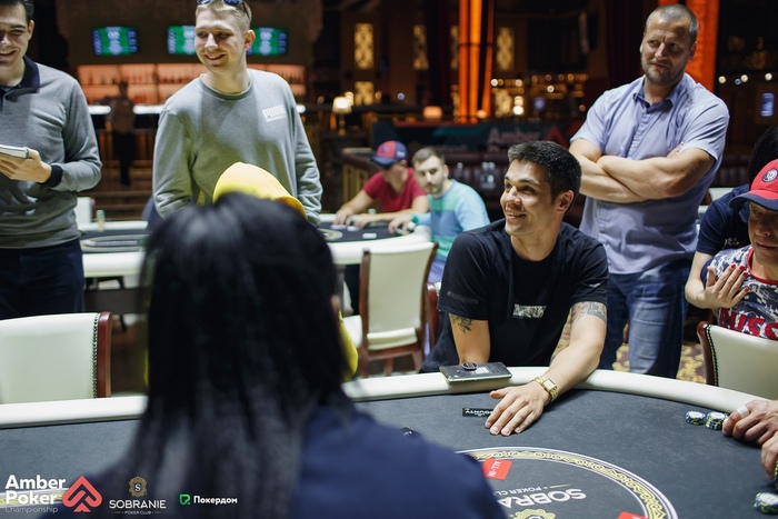 Бирюков сквиз 12,000 с малого блайнда, Рзаев (UTG) уравнял. На флопе Рзаев переставил в олл-ин, Бирюков нехотя заколлировал. Рзаев - . Бирюков - . Флэша не подвезли, Александр устоял. У него 201,000.
