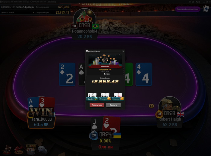 Результат по кайфу, вышло моих 500$ кэш, 100-150$рб и 4-5к с мтт. Суммарно получилось где-то