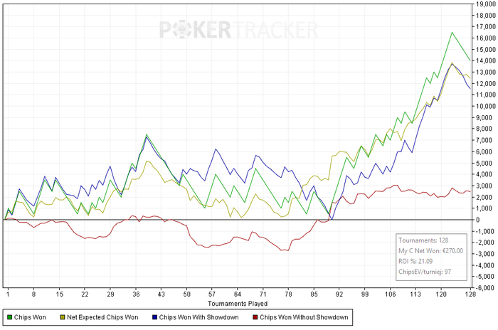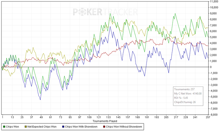 Такие дистанции спокойно можно отыграть как и в -150 фишек, так и +200 фишек играя абсолютно одинаково