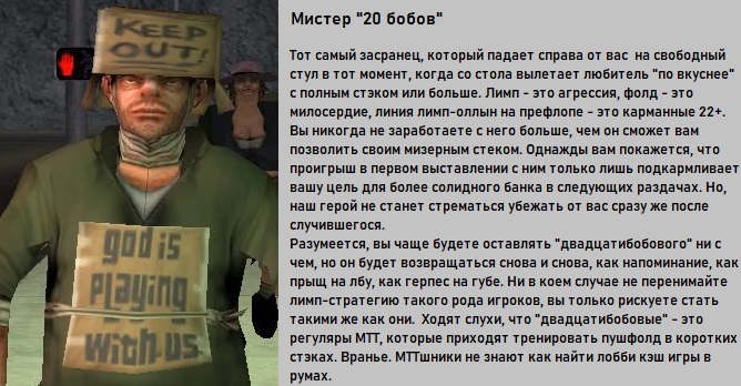 Год назад у меня в дневнике был творческий пост, в котором я сварганил "бестиарий покерного комьюнити", разумеется, смехуечков и веселого настроения ради. https://forum.gipsyteam.ru/index.php?viewtopic=157149&view=findpost&p=6991486