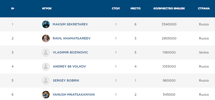 Владимир Божинович защитил большой блайнд от Максима Писаренко (BTN). На флопе серб сыграл чек-колл 35,000, тёрн вдвоём прочекали, а на ривере Божинович добрал 100,000 с трипсом валетов .