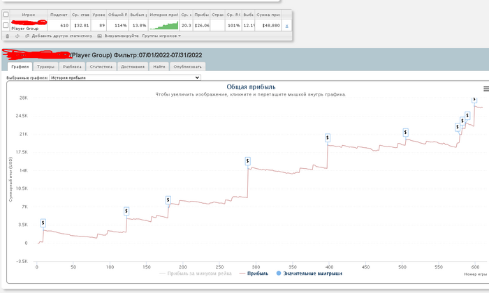У Димы, кстати, отличный дневник здесь. Название, правда, уже не очень актуальное – “Как я начинаю свой покерный путь”. Зацените, как этот “начинающий” игрок откатал июль: