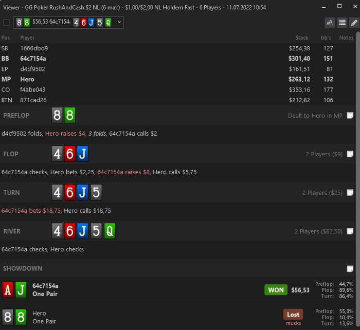 1. Пихать в двоих 3 бет пушем без ФЕ + блокеры на мои ауты часто будут + реауты оппов по моему доезду. Но ГСЧ говорит что я прав