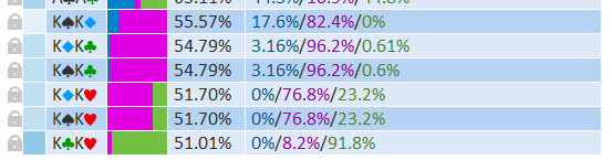 Там же Q лежат тех же мастей, что и короли, получается что мои КК бесполезны в виде блокеров части KQs (у оппа 2 комбы KQs остается, если бы мои КК были буба и пика, у оппа бы не было комб KQs вообще)