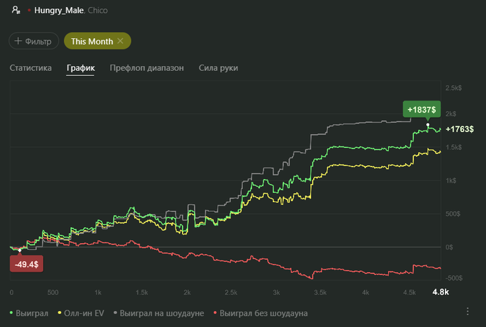Отличный месяц! Наслаждаюсь, по мере накопления банкролла, и движении к цели (ссылка на пост с марафоном).