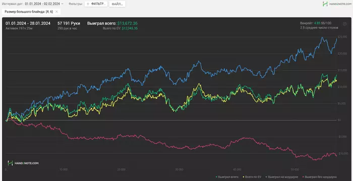 План такой: Попытаться поменять подход к игре и заставлять себя качать другие сферы жизни. Добавить спорт, отдых в обязательном порядке(даже если кажется что он не нужен) и перестать гнаться хуй пойми зачем. Поставить какие-нибудь интересные цели не связанные с покером, чтобы было интересно вставать со столов. Ну и уебаться в теорию и качать себя как игрока дальше. Очень много хуевых раздач сыграно мной за январь, попробую минимизировать их количество.