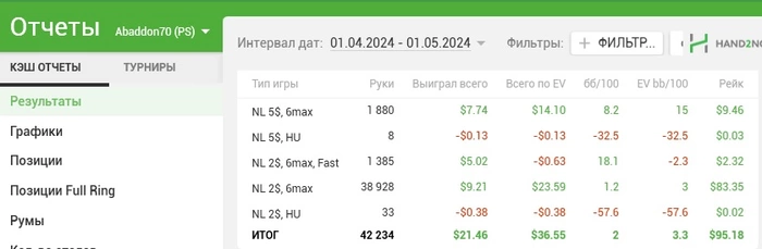 Abaddon70, привет. Ну нормально же, ты по EV недобрал 15$, на дистанции в 42000 рук всего. Представь если будет перебор такой же на следующих 50000.Люди по полмиллиона рук отыгрывают чтоб методично подняться по лимитам.