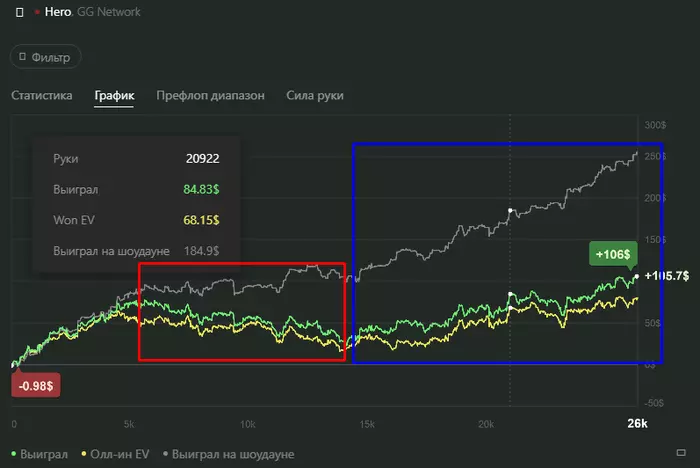 10к рук ничего не заходило (а будет и больше, к примеру 100к рук в 0), а ты поиграл 300 рук и пишешь это