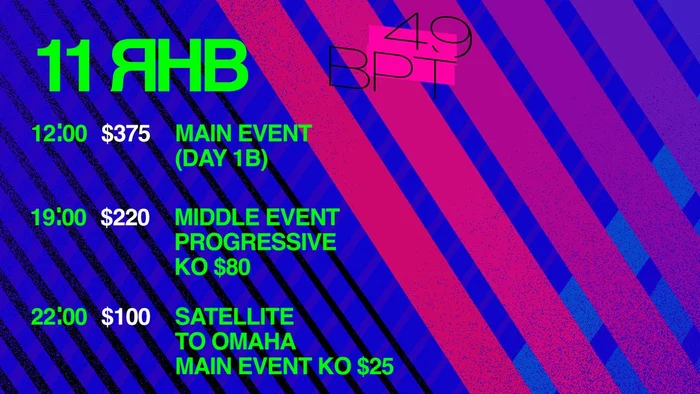 🔘 А в 22:00 пройдет $100 Satellite to Omaha Main event с нокаутом $25.