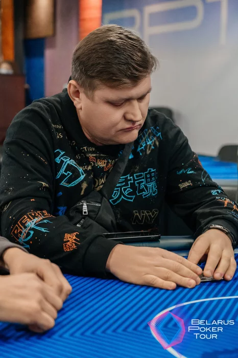 Раздачу выиграл Артём Кухарчук, забрал себе немного фишек и пошел на 8 раздач пенальти.