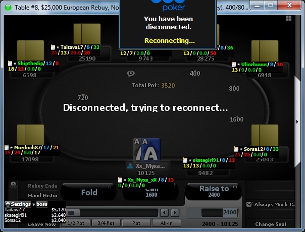 Вчера вечером пацифик вообще подвис минут на 40, когда подключился - во всех турнирах стек съели блайнды. Написал им в саппорт - часть байинов вернули, молодцы.